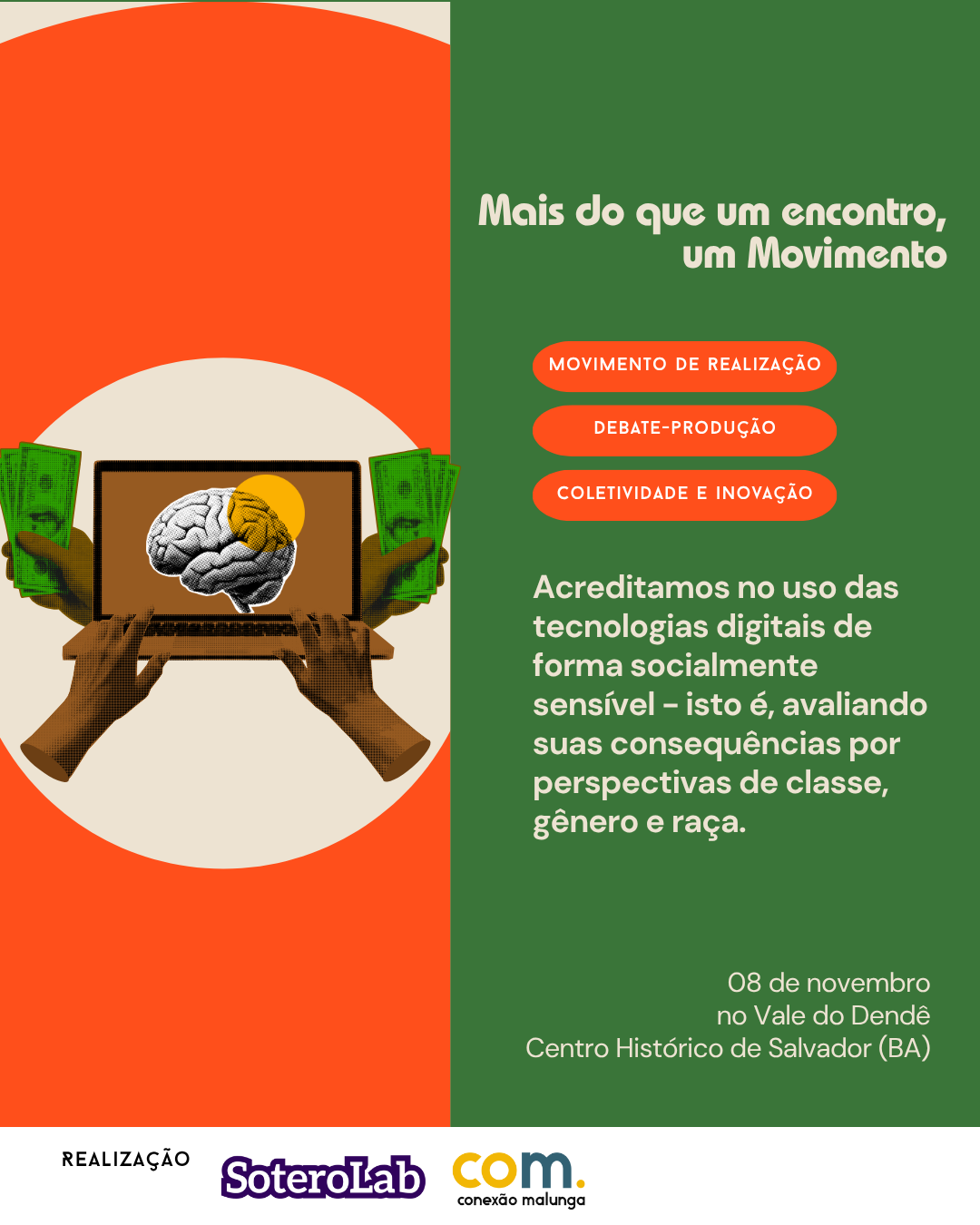 “Buscamos trabalhar a horizontalização do debate e do entendimento sobre estratégias necessárias para atuar na dinâmica de produção tecnológica”, explica Lorena Pereira, fundadora do SoteroLab. “Este é um primeiro passo de um caminho coletivo que aposta no encontro como espelho, na reflexão dos desafios locais e na projeção de possibilidades”, completa Mariana Gomes, idealizadora da Conexão Malunga.